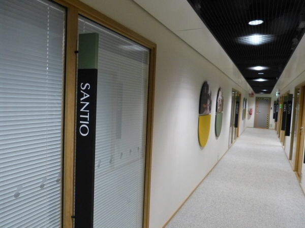 Sami Mattila johdatteli kokousväen monien ovien, portaiden ja käytävien kautta Santio nimiseen kokoushuoneeseen