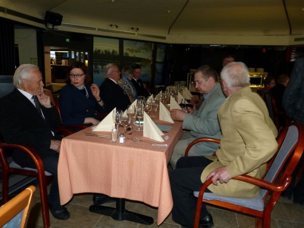Illanviettoon ja päivälliselle kokoonnuttiin hotelli Kiannon Kuohut ravintolasaliin. Illan ohjelmassa oli Teuvo Saharisen tervetuloa toivotuksen jälkeen "sota-ajan" musiikkikappaleita harmonikkataiteilija Kauko Hannulan esittämänä sekä Eero Schroderuksen (lausunta) ja Laura Matilaisen (viulu) esittämä puhutteleva "Talvisodan veteraanin kokemuksia" monologi.
